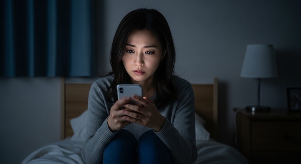 不倫の悩みで心が最も押しつぶされそうになるのは、彼が家族のもとに帰っている深夜の時間帯です。